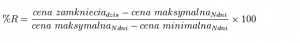 William’s Percent Range – in. %R Williamsa lub %R. Oscylator analizy technicznej używany do pokazywania zależności obecnej ceny zamknięcia od maksymalnej i minimalnej ceny zamknięcia z N poprzednich dni.