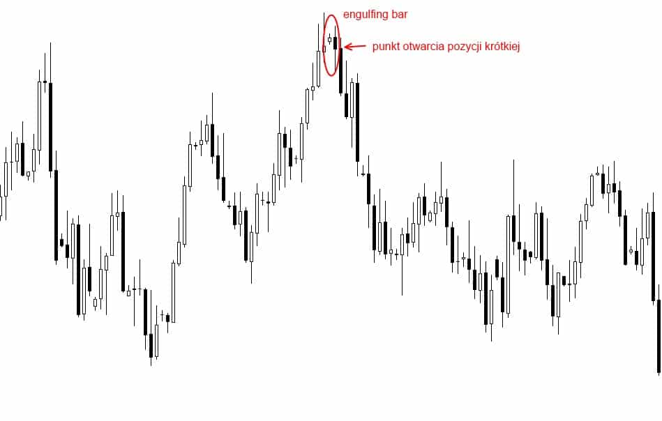 • engulfing bar pojawia się na szczycie trendu wzrostowego lub na dołku trendu spadkowego,