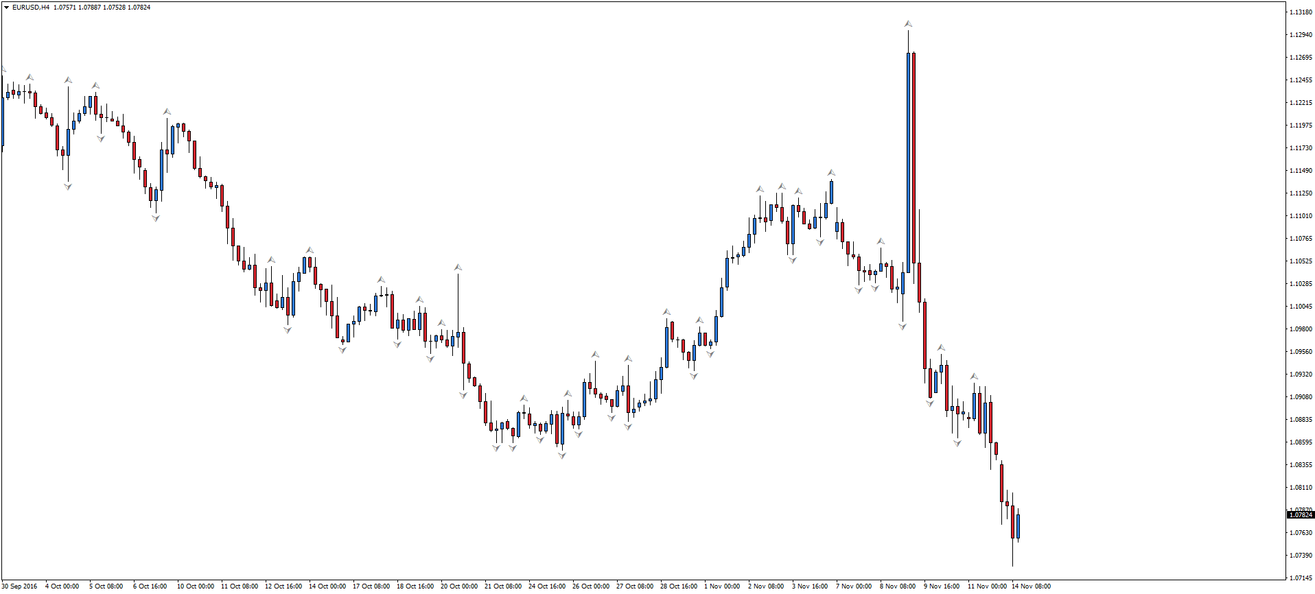 Teoretycznie, odczyt z wskaźnika jest bardzo prosty. Jeżeli na wykresie wsparcia rysowane są coraz wyżej, a poprzedni opór został pokonany, to mamy do czynienia z trendem wzrostowym – w odwrotnej sytuacji – z trendem spadkowym. Należy zwrócić uwagę, że podczas testów wskaźnika Fraktale otrzymanych sygnałów jest cała masa, zatem jest to ostrzeżenie, nie powinniśmy polegać tylko na tym wskaźniku.