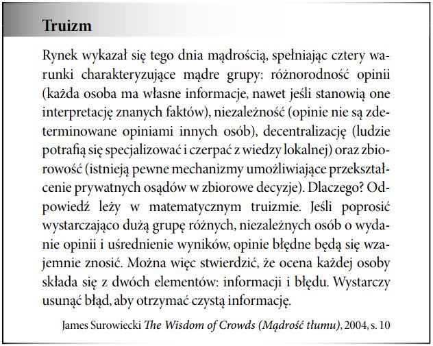 • psychologia tłumu, prowadząca do zrywów zwyżkowych lub gwałtownych spadków odpornych na logikę rynkową,