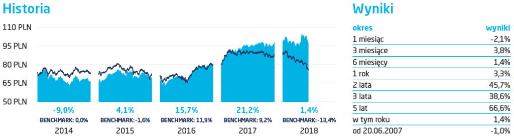 Jednym z elementów zapewnianych przez wszystkie TFI są historyczne stopy zwrotu. Karty zwykle zawierają dane krótkoterminowe (od 1 miesiąca do 12 miesięcy), długoterminowe ( kilka lat) i roczne wyniki z ostatnich kilku lat. W tej sekcji, oprócz informacji o samym funduszu, towarzystwa zazwyczaj również określają zachowanie wskaźnika benchmark w podobnych okresach – pozwala to ocenić, jak dane rozwiązanie wypada na tle rynku.