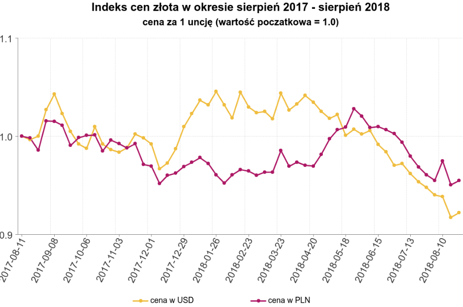 Ale jeśli pójdą w górę (obecnie tak jest w USD; dowiedz się więcej), wówczas wiele osób zamiast niepewnego zysku, jaki może przynieść im „złoto”, woli około 3-4% depozytu. Jest to jeden z głównych powodów, dla których złoto ostatnio straciło na wartości – w ciągu ostatnich 12 miesięcy jego cena w dolarach spadła o ponad 8%. Polscy inwestorzy stracili nieco mniej, 4%.