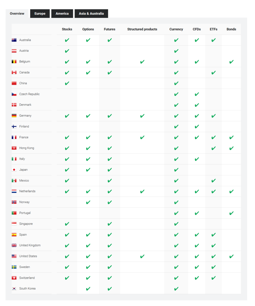 Poprzez Lynx masz dostęp do ponad 100 rynków finansowych w ponad 20 krajach na całym świecie. Dotyczy to również rynków w Europie, Ameryce, Azji i Australii. Klienci mogą handlować akcjami, opcjami, kontraktami futures, forex, obligacjami, CFD i ETF-ami. Należy zauważyć, że niektóre kraje mają dostęp do niektórych klas aktywów, a inne nie.