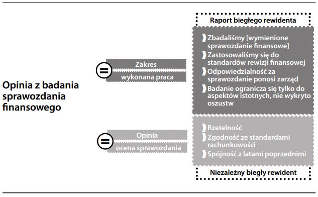 Formalne oświadczenie biegłego rewidenta na temat rzetelności sprawozdania finansowego, jego zgodności ze standardami rachunkowości oraz spójności w stosunku do lat ubiegłych. Jako dodatek do samej opinii, biegły rewident opisze także, co zostało wykonane (standardy badania) i przypomni czytelnikom o pewnych nieodłącznych ograniczeniach (tj. że ostateczna odpowiedzialność za rzetelność sprawozdania spoczywa na zarządzie; że badanie niekoniecznie wykryje oszustwo; i że jego dokładność ograniczona jest do wartości istotnych). Opinia z badania jest końcowym wynikiem pracy poświęconej przez biegłego rewidenta na weryfikację i potwierdzenie poprawności sprawozdawczości; stanowi również podstawę opłaty za badanie. W większości krajów prawo spółek określa pewien próg wielkości, po przekroczeniu którego spółka ma ustawowy obowiązek badania sprawozdań. Może się wydawać, że opinia biegłego rewidenta stwierdza rzeczy oczywiste, potwierdzając tylko to, co zostało zaprezentowane przez jednostkę sprawozdawczą (bo czy ktokolwiek świadomie publikowałby „nierzetelne” sprawozdanie?). Co więcej, opinia zawiera wiele zastrzeżeń sygnalizujących, że daleko jej do świadectwa niezawodności. Gdzie więc powstaje jej ekonomiczna wartość dodana, o ile taka w ogóle istnieje? Efektywność rynków kapitałowych jest ściśle powiązana z poziomem zaufania użytkowników sprawozdwczości do wiarygodności zawartych w niej informacji. To z kolei przekłada się na łatwiejszy dostęp do kapitału i jednocześnie zmniejszenie kosztu kapitału. Biorąc pod uwagę problem konfliktu w stosunkach agencyjnych i asymetrię informacji, największa wartość dodana opinii z badania sprawozdania musi ostatecznie wynikać z wiarygodności i reputacji samego biegłego rewidenta. „Czysta” opinia z badania sprawozdania stanowi tak silne oczekiwanie odbiorców, że uważa się ją za rzecz oczywistą (patrz gotowiec). Jej brak byłby poważnym sygnałem ostrzegawczym – „czerwoną flagą” dla użytkowników sprawozdań. I choć opinia bez zastrzeżeń rzeczywiście stanowi normę, możliwe są również inne wersje: „opinia z zastrzeżeniami” (stwierdzająca ogólną rzetelność, spójność i zgodność z MSSF, z zaznaczeniem wyjątków i istotnych ograniczeń zakresu gwarancji biegłego rewidenta), „opinia negatywna” (stwierdzająca nierzetelność sprawozdania) i „brak opinii” (spowodowany niemożnością wyciągnięcia wniosków).