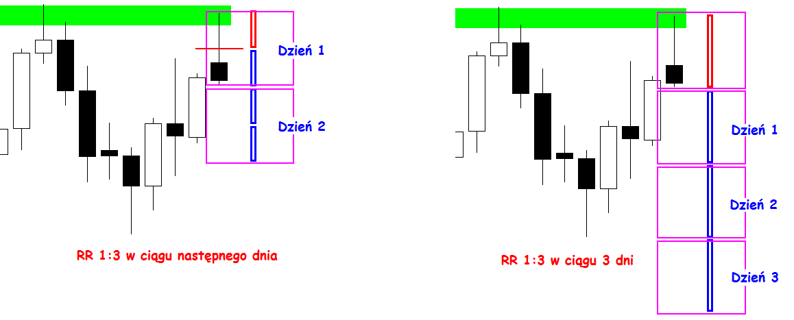 Inwestor stosujący zlecenia oczekujące w 50% świecy znacznie szybciej osiąga zysk w wysokości RR 1:3.
